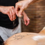 Masaż pięknymi kolorowymi kryształami górskimi i ciepłym olejem ajurwedyjskim. Ma działanie witalizujące, rozgrzewa, doskonale likwiduje napięcia i bóle mięśni.